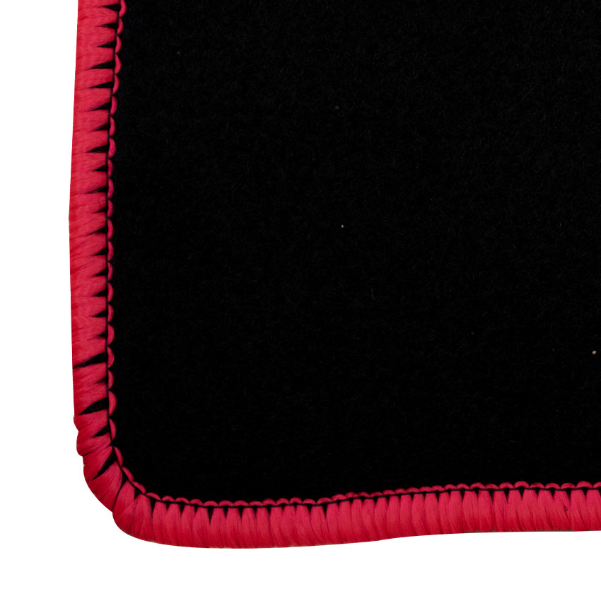 Πατάκια δαπέδου μοκέτας Clan σε μαύρο χρώμα με κόκκινο ρέλι. Ειδικά σχεδιασμένα για: Daewoo Kalos/ Aveo μοντ. 2003 - 2011