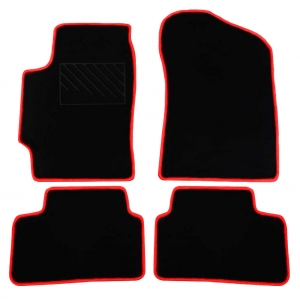 Πατάκια δαπέδου μοκέτας Omega μαύρα με κόκκινο ρέλι για Hyundai Coupe (GK) 4τμχ