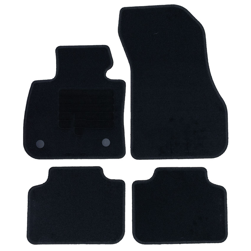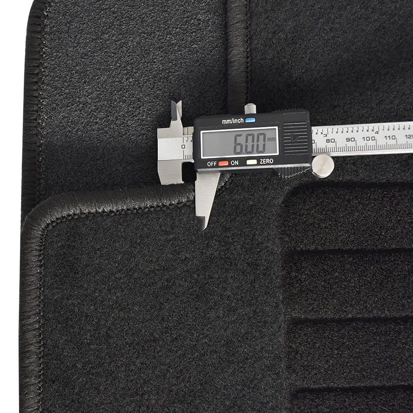 Πατάκια δαπέδου μοκέτας ποιότητας Standard της εταιρείας Rigum σε μαύρο χρώμα. Διαθέτουν 2 καπάκια σταθεροποίησης, ενισχυμένο πάτημα στο πατάκι του οδηγού και αντιολισθητικό υπόστρωμα.