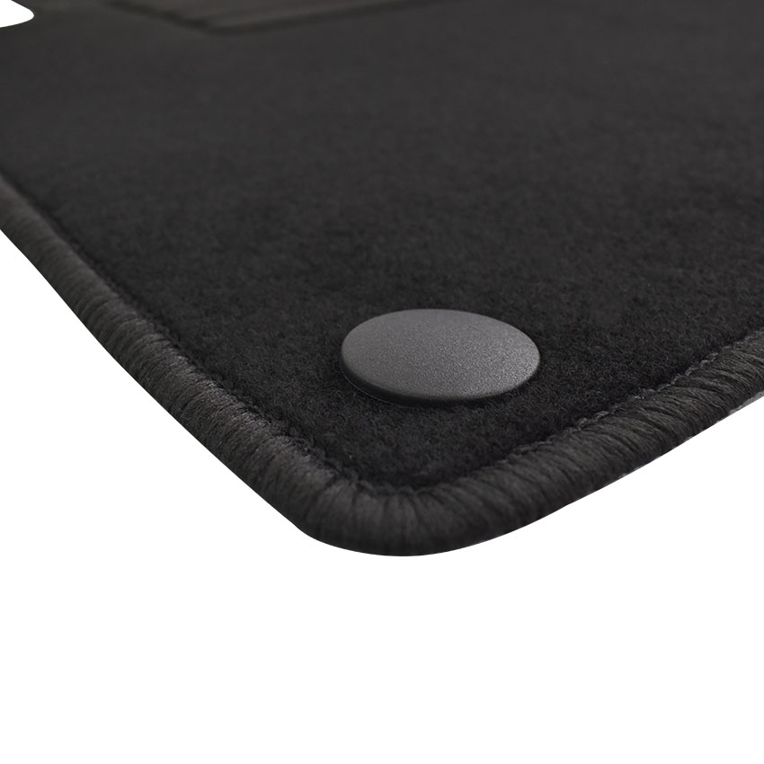 Πατάκια δαπέδου μοκέτας ποιότητας Standard της εταιρείας Rigum σε μαύρο χρώμα. Διαθέτουν clips σταθεροποίησης, ενισχυμένο πάτημα στο πατάκι του οδηγού και αντιολισθητικό υπόστρωμα.