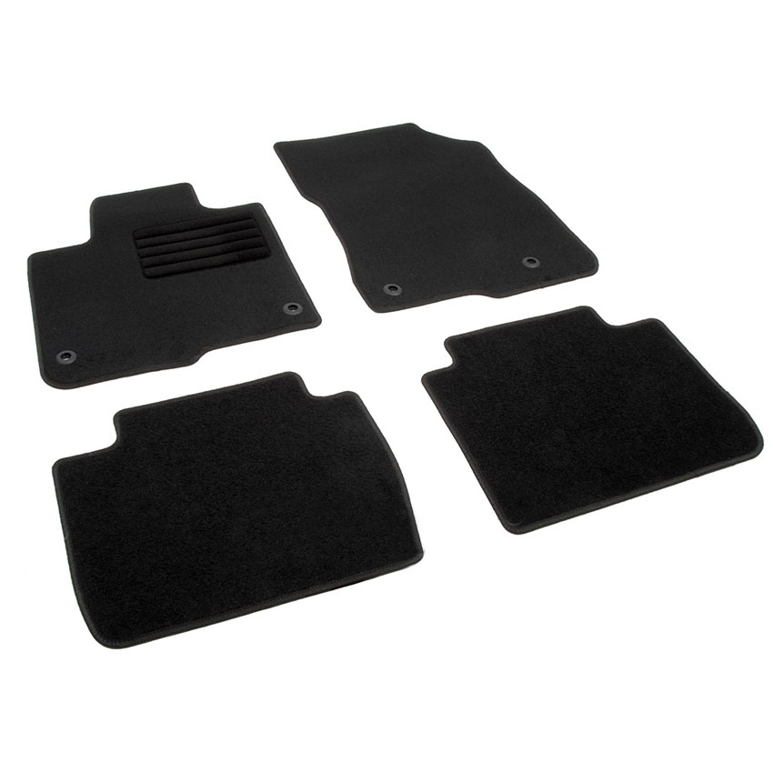 Πατάκια δαπέδου μοκέτας ποιότητας Standard της εταιρείας Rigum σε μαύρο χρώμα. Διαθέτουν clips σταθεροποίησης, αντιολισθητικό υπόστρωμα καιενισχυμένο πάτημα στο πατάκι του οδηγού.