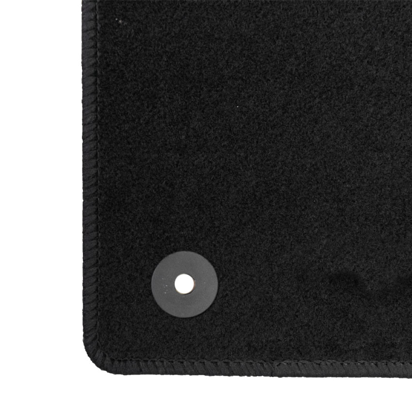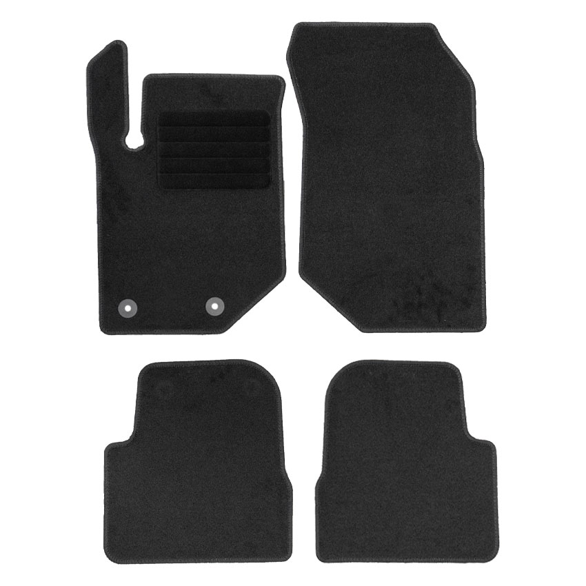 Πατάκια δαπέδου μοκέτας ποιότητας Standard της εταιρείας Rigum σε μαύρο χρώμα. Διαθέτουν clips σταθεροποίησης, αντιολισθητικό υπόστρωμα και ενισχυμένο πάτημα στο πατάκι του οδηγού.