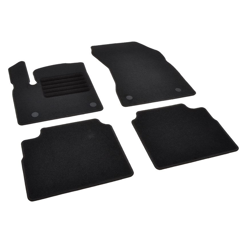 Πατάκια δαπέδου μοκέτας ποιότητας Standard της εταιρείας Rigum σε μαύρο χρώμα. Διαθέτουν clips σταθεροποίησης, αντιολισθητικό υπόστρωμα και ενισχυμένο πάτημα στο πατάκι του οδηγού.