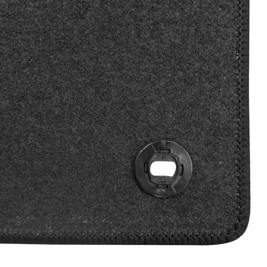 Πατάκια δαπέδου μοκέτας ποιότητας Standard της εταιρείας Rigum σε μαύρο χρώμα. Διαθέτουν 4 κουμπώματα (οβάλ) στο οδηγό και στο συνοδηγό, αντιολισθητικό υπόστρωμα και ενισχυμένο πάτημα στο πατάκι του οδηγού.