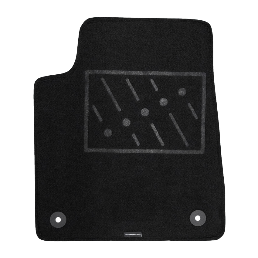 Πατάκια δαπέδου μοκέτας Standard σε μαύρο χρώμα. Διαθέτουν 2 κουμπώματα (στρόγγυλα) στο πατάκι του οδηγού.