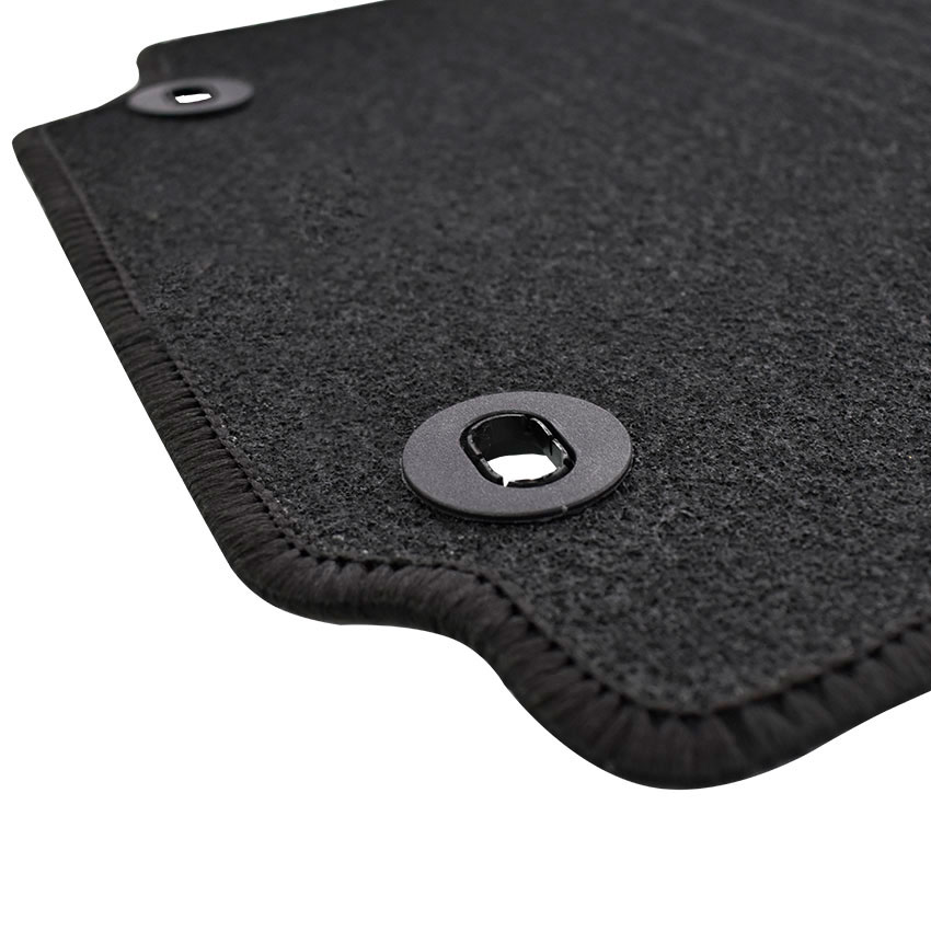 Πατάκια δαπέδου μοκέτας ποιότητας Standard της εταιρείας Rigum σε μαύρο χρώμα. Διαθέτουν clips σταθεροποίησης, ενισχυμένο πάτημα στο πατάκι του οδηγού και αντιολισθητικό υπόστρωμα.
