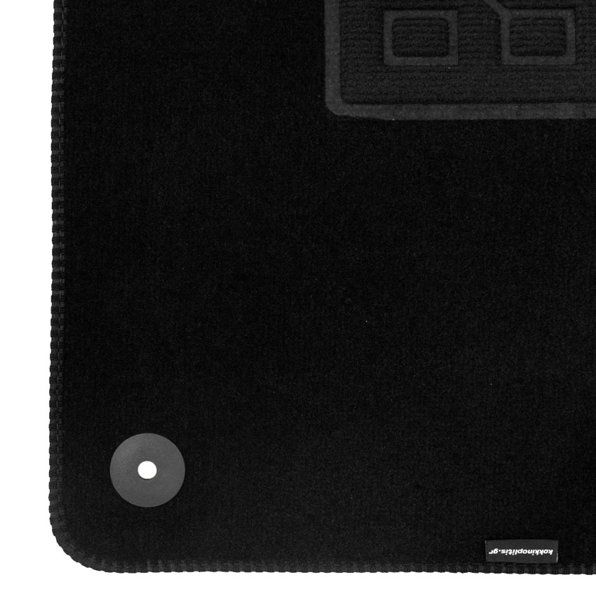 Πατάκια δαπέδου μοκέτας Superior σε μαύρο χρώμα. Διαθέτουν 4 στρόγγυλα κουμπωματα, ενισχυμένο πάτημα στο πατάκι του οδηγού, αντιολισθητικό και στεγανό υπόστρωμα.