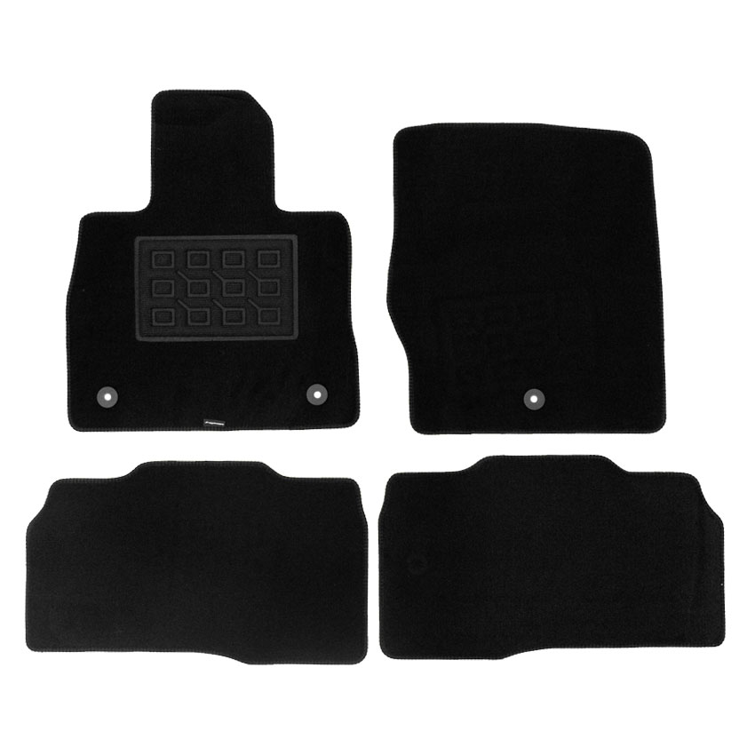 Πατάκια δαπέδου μοκέτας Superior σε μαύρο χρώμα. Διαθέτουν 3 στρόγγυλα κουμπωματα, ενισχυμένο πάτημα στο πατάκι του οδηγού, αντιολισθητικό και στεγανό υπόστρωμα.