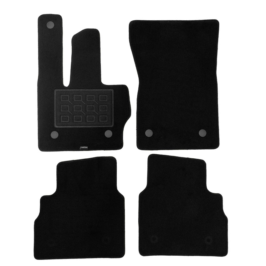 Πατάκια δαπέδου μοκέτας Superior σε μαύρο χρώμα. Διαθέτουν 5 κουμπωματα (καπάκια), ενισχυμένο πάτημα στο πατάκι του οδηγού, αντιολισθητικό και στεγανό υπόστρωμα.