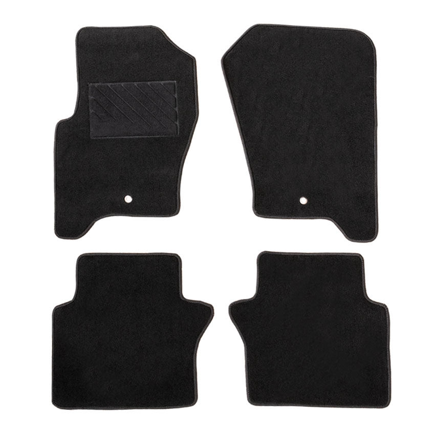 Πατάκια δαπέδου μοκέτας Tuft σε μαύρο χρώμα. Διαθέτουν κλιπς σταθεροποίησης (δαχτυλίδια) στα πατάκια του οδηγού και του συνοδηγού.