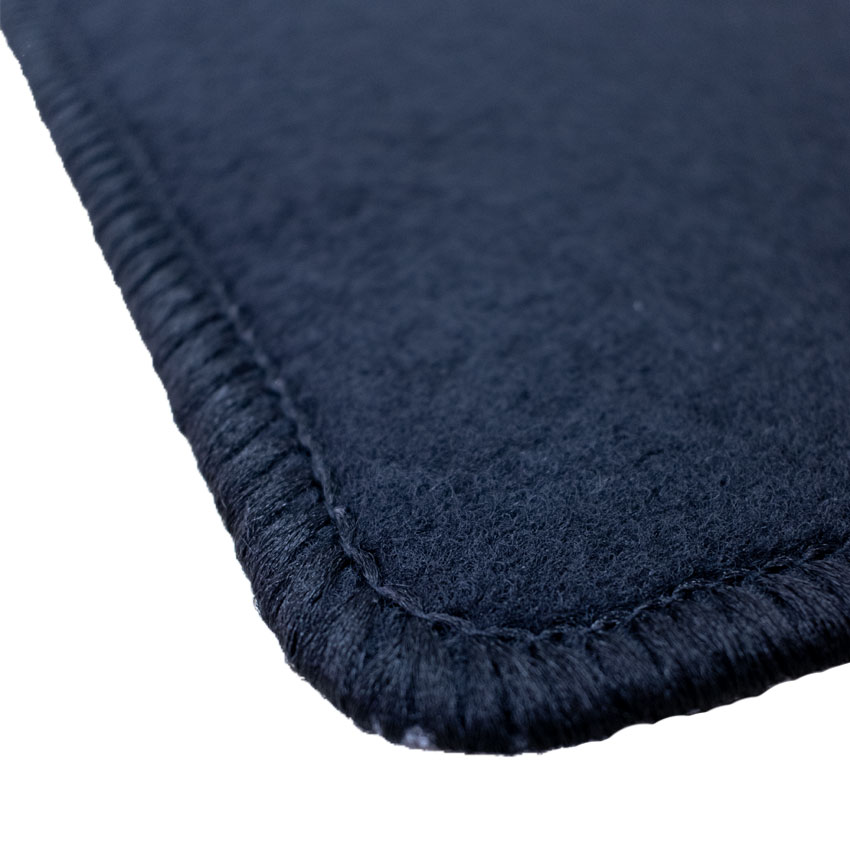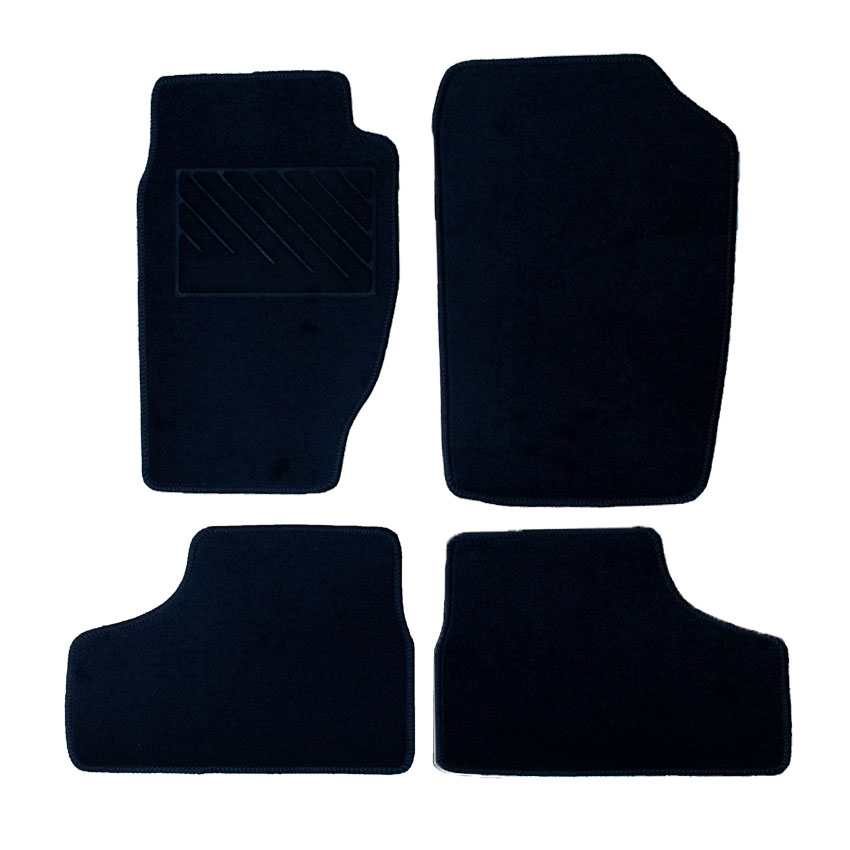 Πατάκια δαπέδου μοκέτας Velgum σε μαύρο χρώμα. Διαθέτουν clips σταθεροποίησης, ενισχυμένο πάτημα στο πατάκι του οδηγού, αντιολισθητικό και στεγανό υπόστρωμα.