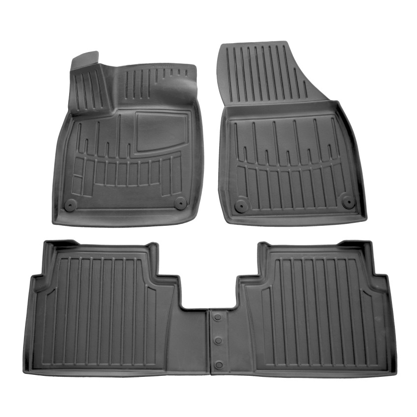 Πατάκια δαπέδου λαστιχένια, απαλλαγμένα από οσμές και με μεγάλη διάρκεια ζωής. Το χείλος (περίπου 1cm) και η κυψελωτή επιφάνεια συγκρατεί νερά, λάσπες, χώματα και χιόνι διατηρώντας το εσωτερικό του οχήματος σας καθαρό. Τα πατάκια είναι αντιολισθητικά και καθαρίζονται πολύ εύκολα. Διαθέτουν άψογη εφαρμογή και clips σταθεροποίησης.