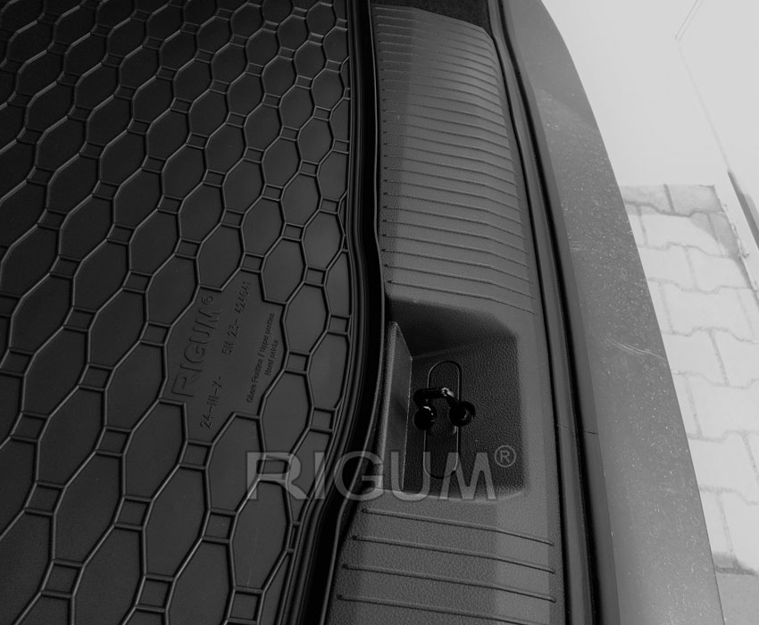 Πατάκι πορτ μπαγκάζ Rigum, κατασκευασμένο από υψηλής ποιότητας άοσμο ανθεκτικό καουτσούκ, φιλικό προς το περιβάλλον. Αντιολισθητικό και πολύ εύκολο στο καθάρισμα. Το χείλος που διαθέτει (περίπου 2cm) και η ειδικά διαμορφωμένη κυψελωτή επιφάνεια συγκρατούν νερά, λάσπες, χώματα και χιόνι, διατηρώντας καθαρό το εσωτερικό του αυτοκινήτου. Διαθέτει άψογη εφαρμογή.