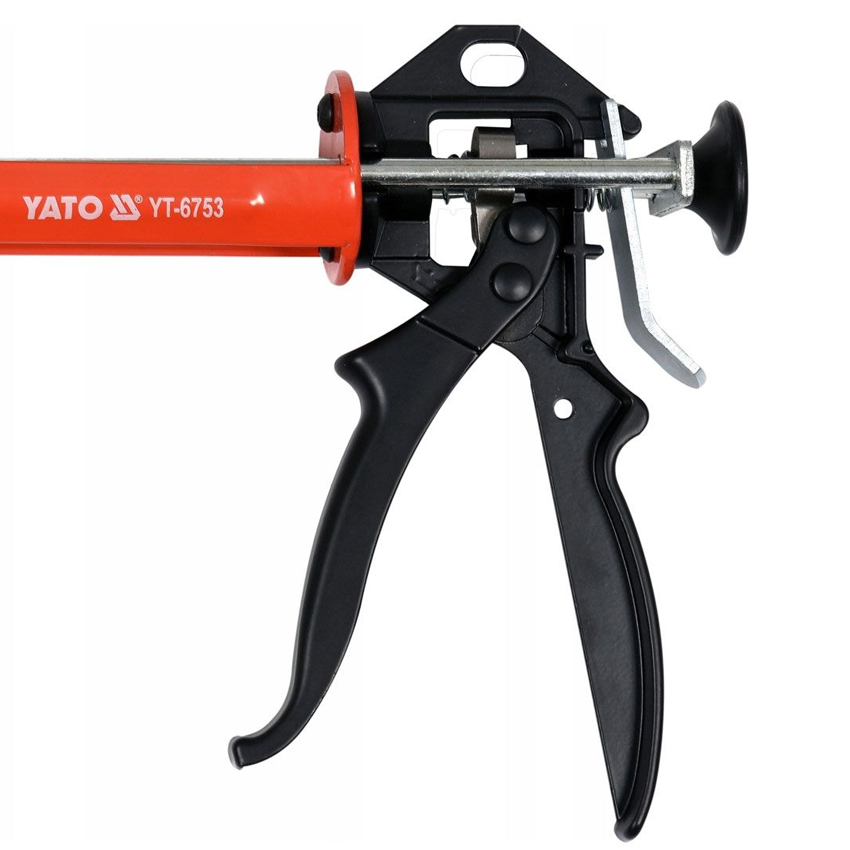 Πιστόλι σιλικόνης ανοιχτού τύπου από την Yato, για συσκευασίες κλασικών φυσιγγίων χωρητικότητας 300ml. Μεταλλική στιβαρή κατασκευή, κατάλληλο για επαγγελματική και ερασιτεχνική χρήση.