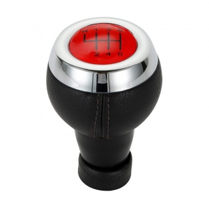 Πόμολο ταχυτήτων με αριθμούς (1-6) και όπισθεν (R) σε μαύρο-κόκκινο χρώμα.