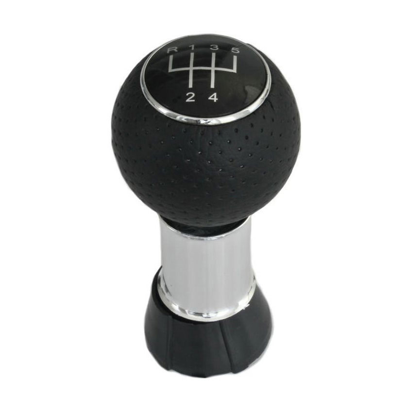Πόμολο ταχυτήτων με αριθμούς (1-5) και όπισθεν (R) αριστερά προς τα πάνω σε μαύρο-ασημί χρώμα.