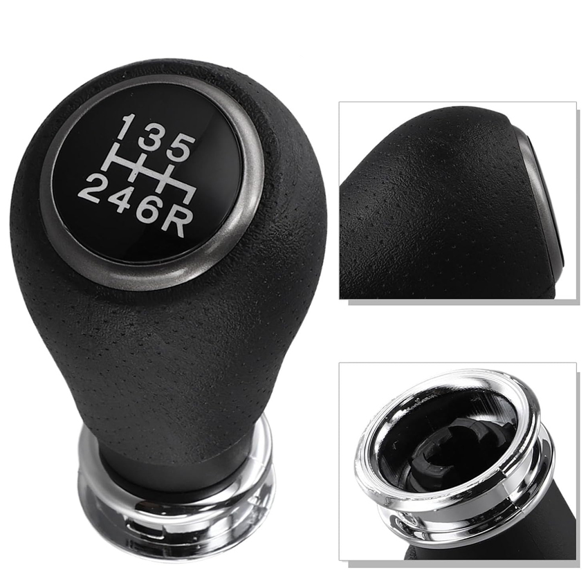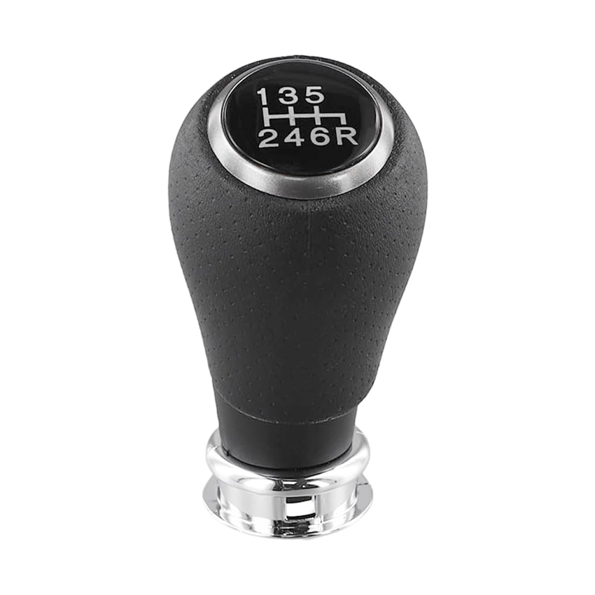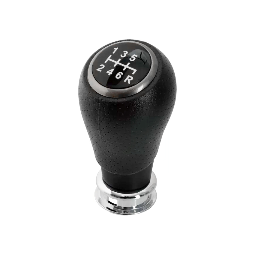 Πόμολο ταχυτήτων μαύρο με αριθμούς ταχυτήτων (1-6) και όπισθεν (R) αριστερά κάτω, κατασκευασμένο από τεχνόδερμα υψηλής ποιότητας