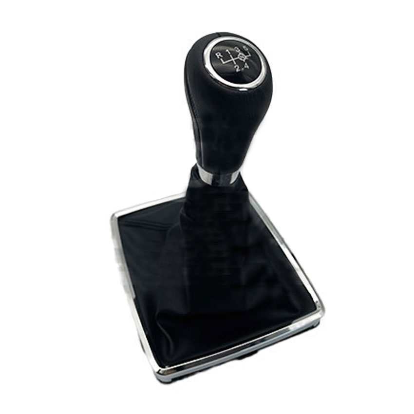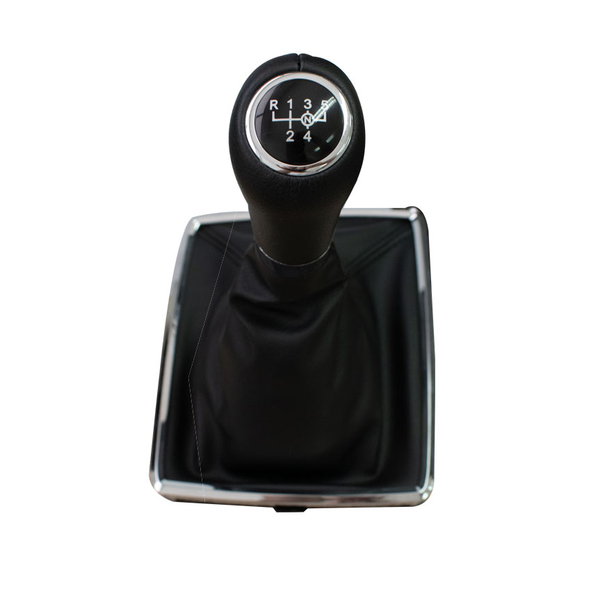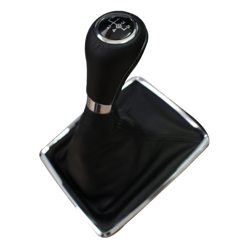 Πόμολο ταχυτήτων με αριθμούς (1-5) και όπισθεν (R) πρως τα πάνω σε συνδυασμό με φυσούνα (φούσκα) από εξαιρετικής ποιότητας τεχνόδερμα σε μαύρο χρώμα με ασημί πλαίσιο τοποθέτησης.