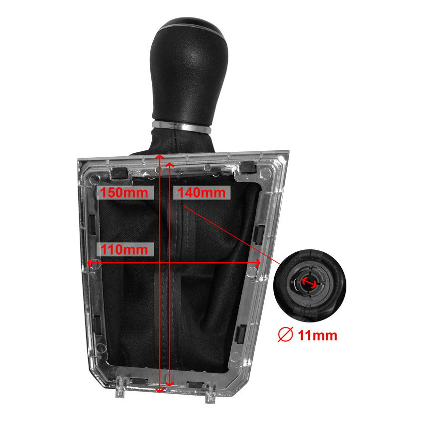 Μαύρο πόμολο ταχυτήτων κομπλέ με φυσούνα, από τεχνόδερμα με λεπτομέρειες χρωμίου. Διαθέτει αριθμούς (1-6) και όπισθεν R.
