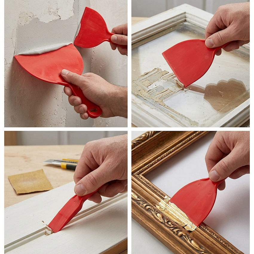 Καθαρισμός Επιφανειών: Μπορείς να τις χρησιμοποιήσεις για να ξύσεις μαλακά υπολείμματα μπογιάς, λάσπης ή αυτοκόλλητων από ευαίσθητες επιφάνειες (όπως γυαλί, πλαστικό ή ξύλο) χωρίς να προκαλέσεις γρατζουνιές που θα άφηνε μια μεταλλική σπάτουλα.