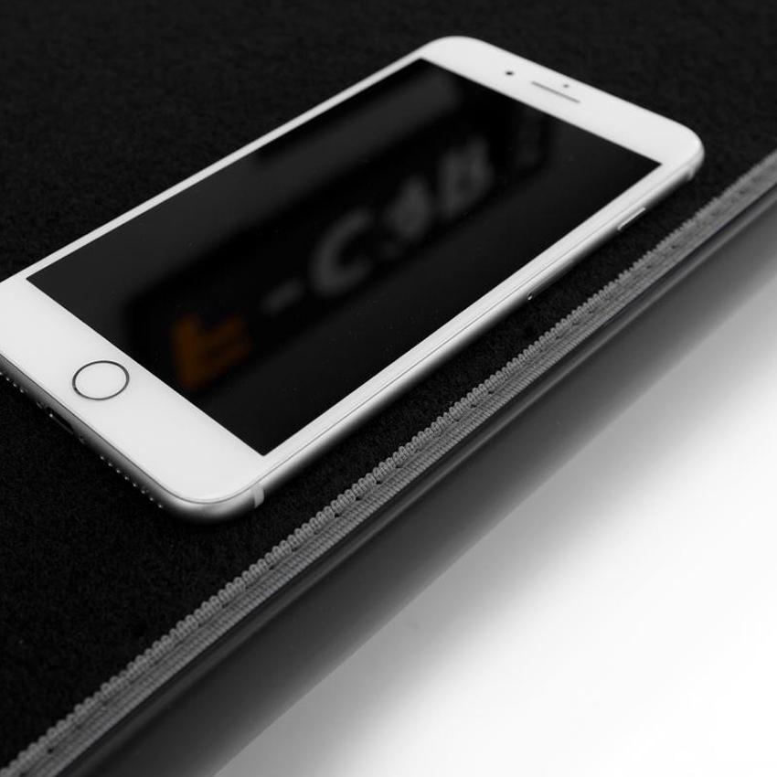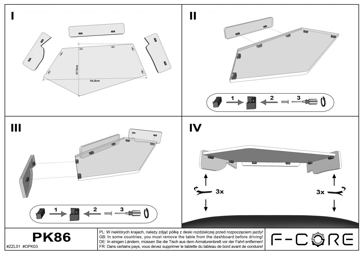 Τραπεζάκι ταμπλού φορτηγού κατασκευασμένο από ξύλινη πλάκα κομμένη με λέιζερ για να εξασφαλίζει την καλύτερη εφαρμογή στο ταμπλό. Διαθέτει αντιχαρακτικές μαλακές PVC άκρες για την αποφυγή γρατσουνιών και την αύξηση της πρόσφυσης στο ταμπλό όταν είναι στη θέση του και ένα αντιολισθητικό μοκέτα στο επάνω μέρος σε μαύρο χρώμα με γκρι ρέλι.