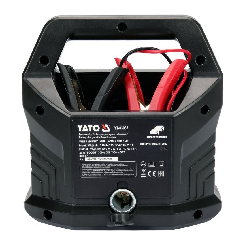 Φορτιστής μπαταρίας αυτοκινήτου από την Yato είναι μια επαγγελματική συσκευή για τη φόρτιση μπαταριών 12 V σε μοτοσικλέτες, αυτοκίνητα και φορτηγάκια, τρακτέρ και μηχανοκίνητα σκάφη. Επιτρέπει τη φόρτιση των λεγόμενων υγρών μπαταριών, μπαταριών τύπου gel, AGM, EFB και MF.