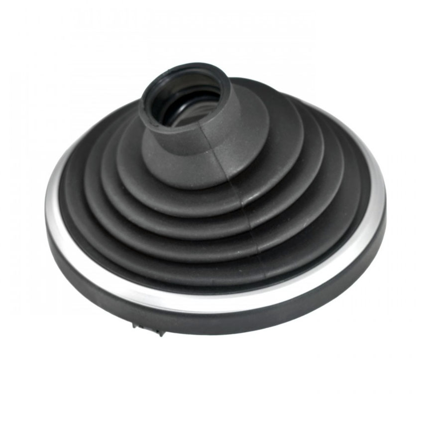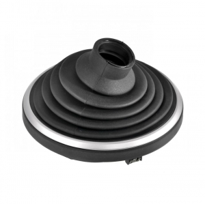 Μαύρη λαστιχένια φούσκα ταχυτήτων για κοντή κονσόλα, κατάλληλη για Ford Fiesta V μοντ. 2002 - 2008 / Ford Fiesta VI Pre Facelift μοντ. 2008 - 2012. Διαθέτει στεφάνι τοποθέτησης με ασημί λεπτομέρειες.