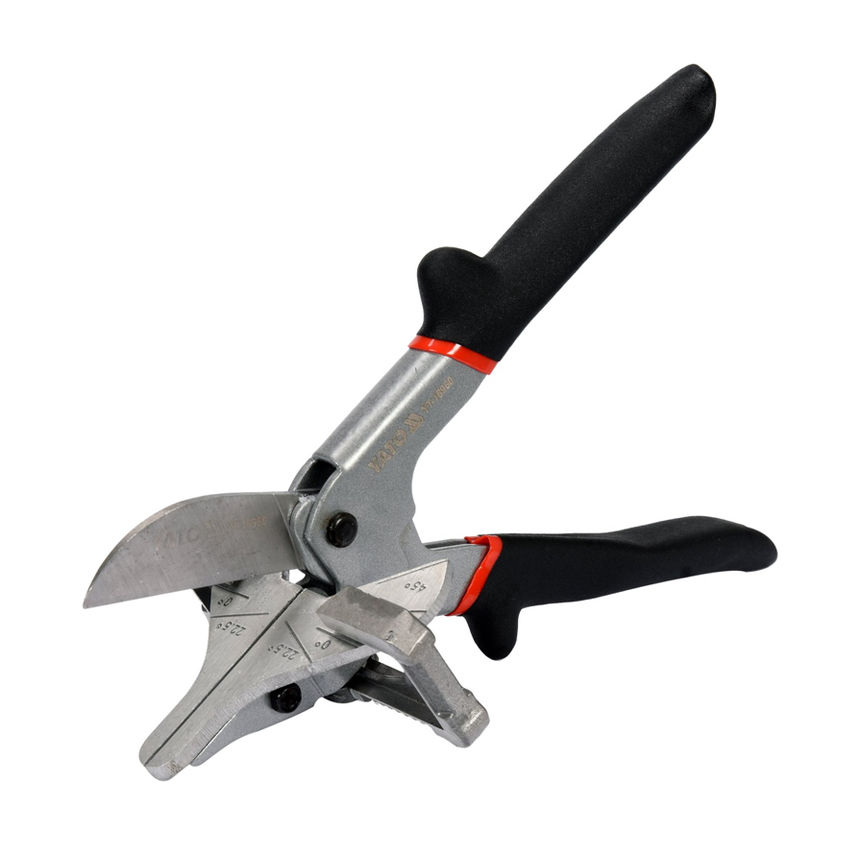 Ψαλίδι για γωνιακή κοπή  από την Yato κατάλληλο για ταινίες, σωλήνες, παρεμβυσμάτα και άλλα υλικά όπως βινύλιο, καουτσούκ, πλαστικό κ.λπ. Διαθέτει λεπίδα από ανοξείδωτο χάλυβα με σκληρότητα 53 - 57 HRC με ένα αποτελεσματικό σύστημα για γρήγορη ρύθμιση γωνιών κοπής 0°, 22,5° και 45° προς τα αριστερά ή προς τα δεξιά του άξονα του ψαλιδιού. Ένα εργαλείο για ακριβή και αποτελεσματική κοπή διαφόρων τεχνικών υλικών, όπως σωλήνες, καλώδια, πλαστικούς σωλήνες, λωρίδες ξύλου, πλαστικές λωρίδες και άλλα υλικά φινιρίσματος.