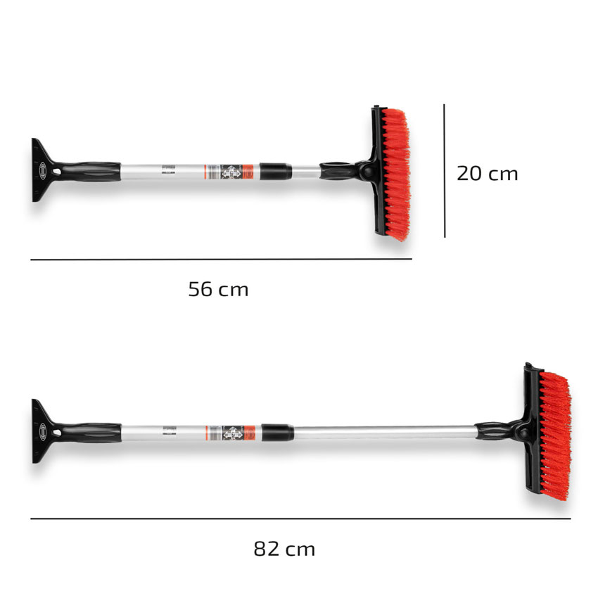 Καθαριστής τζαμιών με τηλεσκοπικό κοντάρι 56-82cm. Με τη λειτουργία 3 σε 1, το καθαριστικό παρμπρίζ διαθέτει βούρτσα, ξύστρα πάγου και πλυντήριο παρμπρίζ. Το ποιοτικό καθαριστικό παρμπρίζ διαθέτει διπλό σύστημα υαλοκαθαριστήρων 20 cm, διευκολύνοντας την απομάκρυνση της βρωμιάς και της βρωμιάς από το παρμπρίζ. Ο σωλήνας αλουμινίου με εργονομική λαβή (⌀ 23 mm) διευκολύνει το χειρισμό του και χάρη στη τηλεσκοπική προέκταση καθιστώντας τον ιδανικό για μεγάλα οχήματα όπως SUV, τροχόσπιτα, αυτοκινούμενα, φορτηγά και φορτηγά.