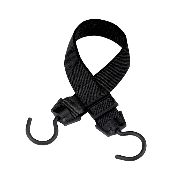 Ελαστικός ιμάντας πρόσδεσης με περιστρεφόμενους ατσάλινους γάντζους επικαλυπτόμενους με πλαστικό για ασφαλέστερη χρήση και αποφυγή γρατζουνιών. Ο ιμάντας έχει μήκος 60cm (τεντωμενος έως 100cm)  και μπορεί να ρυθμιστεί έως 120cm (τεντωμενος έως 225cm κάτι που τον καθιστά εξαιρετικά ευέλικτο στην χρήση. Οι γάντζοι έχουν την δυνατότητα περιστροφής 180° και αντοχής βάρους 45 κιλών και δύναμης 80N.
